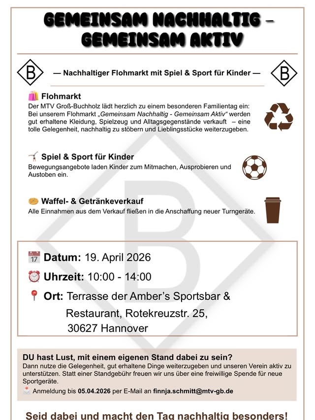 Bei unserem Flohmarkt „Gemeinsam Nachhaltig - Gemeinsam Aktiv"werden gut erhaltene Kleidung, Spielzeug und Alltagsgegenstände verkauft - eine tolle Gelegenheit, nachhaltig zu stöbern und Lieblingsstücke weiterzugeben.