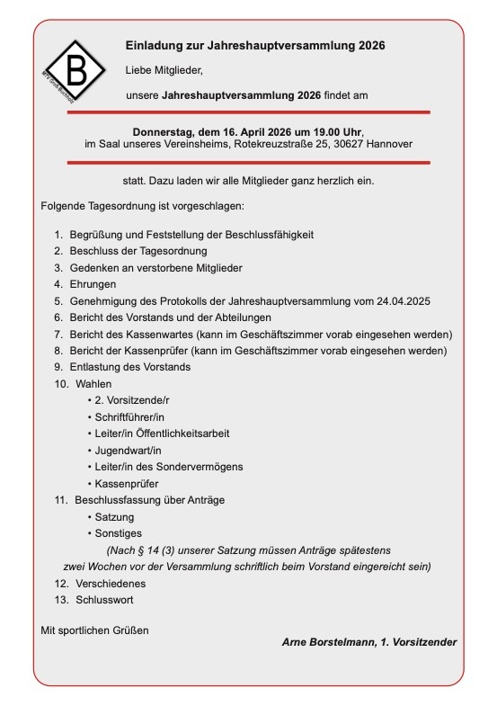 Einladung zur Jahreshauptversammlung 2026